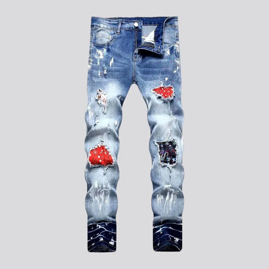 Black men's painted jeans